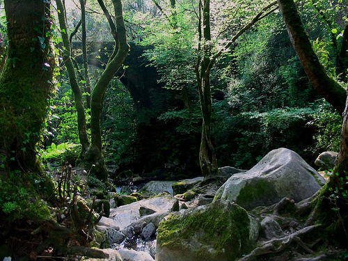 A túa pel é a miña pel. A túa suor é a miña. Todas e cada unha das pingas de auga que percorren o teu corpo. O teu sal é o meu sal. As túas trinta e tres vértebras, o meu espiñazo. A luz que che brilla nas meniñas, o meu solpor. Todas e cada unha das bágoas que lamben a túa pel son a miña auga. A miña suor. O meu cuspe. Non hai nada en ti que non me pertenza. Nada en ti que non sexa meu. A túa pel, a túa auga, as túas vértebras, o teu sal, a túa luz. Eva tremelica espida no corazón máis negro da fraga. É noite. O ruído dos seus dentes ao bater uns contra os outros compite coa chuvia iracunda que se precipita sobre a terra mol, sobre o río, sobre todas e cada unha das follas dos sabugueiros, dos bidueiros, dos carballos. Todos os dedos de auga petan con violencia nas teclas do mundo. Tamén nas súas. A cachoeira multiplica o seu eco dende o mar ata o mesmo cu do monte onde abrolla o río. O río. A súa forza afoga os lamentos máis sonoros pero non é quen de apagar estoutros, os que se lle envolven na gorxa e van baixando polo esófago, logo pola boca do estómago ata, finalmente, ficar retorcidos nos intestinos. Por iso Eva prefire berrar a deixar que este regato velenoso e cargado de silencios e culpa lle amoleza nas tripas. Colle aire nos pulmóns ata notar como o peito lle rebenta e logo deita un aturuxo rabioso sobre a pel das follas, sobre o leito do río, sobre os fungos, sobre as pedras, sobre os fieitos. Eva berra ata enxordecer pola ira húmida da súa propia voz. Para apagar a impotencia, a rabia, a covardía da fraga, acubillo e cadaleito. Eva berra e a fraga engole o seu lamento dun só grolo, roubándolle mesmo o consolo do eco que se perde polo mundo e demostre que segue alí. Que aínda está viva e pode contalo. O caso é a quen. Coma as outras veces. A quen. Eva arremuíñase arredor do seu propio corpo en coiros, amarrada de brazos e pernas á súa mísera pel. Tentando protexer o corazón cunha casca de epiderme, cando o cancro se estende de ventrículos para dentro. Eva lambe as pingas da pel e sacode a auga que lle escorrega polo pelo, polo colo, polas dedas dos pés. A fraga enléase nas súas vértebras e éntralle dentro con paso lento de caracois sobre unha estreira de babuxas. E cando Eva máis berra máis se lle meten dentro as sobreiras, os bidueiros, os salgueiros, as abeleiras, os freixos, os liques, os cons do río, os latexos dos morcegos, o cheiro fedorento do golpe, a sombra da bubela, o tacto suave das píntegas, os vómitos da avelaiona –egagrópilas, Eva, egagrópilas, repetíanlle na escola, egagrópilas- Que fillo de puta o don Perfecto, egagrópilas, Eva, egagrópilas. E Eva berra egagrópilas, egagrópilas para liberarse de todo o aprendido, de todo o inculcado coa letra que con sangue entra. Egagrópilas, egagrópilas. E canto máis o repite máis se lle enlean os felgos arborescentes, o carrizo, as lamachas, os rebolos, os narcisos e os pradairos por entre os dedos, nas orellas, na melena, nas inguas. Egagrópilas, egagrópilas. Esta voz. Esta voz non é súa. Non son as súas cordas vogais as que chaman. Nin tampouco é a fraga. Demasiado familiar. Como quen fala para dentro. Eva, que nunca parou de tremer, vibra agora cun terrible sobresalto. É el. Maldita sexa. A túa pel é a miña pel. A túa suor é a miña. Todas e cada unha das pingas de auga que percorren o teu corpo. O teu sal é o meu sal. As túas trinta e tres vértebras, o meu espiñazo. A luz que che brilla nas meniñas, o meu solpor. Todas e cada unha das bágoas que lamben a túa pel son a miña auga. A miña suor. O meu cuspe. Non hai nada en ti que non me pertenza. Nada en ti que non sexa meu. A túa pel, a túa auga, as túas vértebras, o teu sal, a túa luz. Como puido sospeitar do seu agocho. É noite e continúa a chover sobre a fraga e sobre Eva que se deixa enlear polas pólas dun sabugueiro. A voz cada vez máis cerca e Eva que machuca a terra co bater desbocado do seu corazón. A voz xa non é un grito de chamada é un moumeo na orella. A túa pel é a miña pel. A túa suor é a miña. Todas e cada unha das pingas de auga que percorren o teu corpo. O teu sal é o meu sal. As túas trinta e tres vértebras, o meu espiñazo. A luz que che brilla nas meniñas, o meu solpor. Todas e cada unha das bágoas que lamben a túa pel son a miña auga. A miña suor. O meu cuspe. Non hai nada en ti que non me pertenza. Nada en ti que non sexa meu. A túa pel, a túa auga, as túas vértebras, o teu sal, a túa luz. Eva fica inmóbil. Como as sobreiras, como os ameneiros, como os felgos, como as pedras. Deixa que a chuvia lle bañe a pel e caia sobre as pernas e os brazos como o río que, ruidoso, se desliza cara ao mar. Pensa que a fraga enroscada nas vértebras ha agochala pero a voz pasa de bico a labazada no furado da orella. E o maldito corazón da fraga rabuñado de felgos arborescentes e babas de caracol non logra engulila. É ela quen consume a fraga. Nun acto de desesperación última –entre suicida e vitorioso- Eva traba na noite e arrinca a cortiza da súa sobreira dunha soa mordedura. Doe como se arrincase a pel a tiras. Sangra, proe, laia. Pero ela arregaña os dentes que antes só sabían tremelicar e mastiga con xenreira os anacos de codia que aínda manchan a súa pel espida. Xusto coa furia necesaria. A voz da orella apágase lentamente, a medio camiño entre a sorpresa e o desengano, namentres Eva quita de entre as unllas os restos de cortiza vermella da sobreira que a esganaba. E berra, por fin, máis alto cá fraga que nunca conseguiu agochala. Máis alto có río. Máis alto có bater de ás da curuxa e có pestanexar dos morcegos. Eva en coiros, Eva enleada en chuvia consome a fraga e esmigalla entre os dedos engoumados o seu corazón de sombras e follas secas que xa non producen osíxeno para respirar. E fica no eco do río o retrouso que chega dende o cu do monte. A túa pel é a miña pel. A túa suor é a miña. Todas e cad