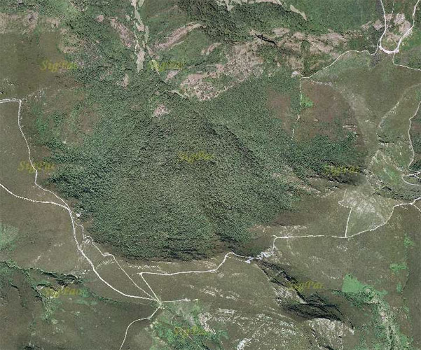 No pé da montaña había unha pequena touza de rebolos asfixiados pola carriza. Pam levara o zoom alí e distinguira as eirugas negras comendo as follas igual ca os vermes nerviosos no corpo dun can. De cor negra.