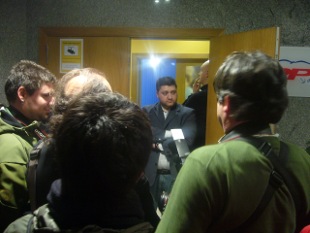 Os dirixentes populares continúan no interior da sede, analizando os datos recollidos ao longo da xornada; mentres, fóra, na sala de prensa, os xornalistas agardan. O éxito ou o fracaso popular pode depender dun escano.