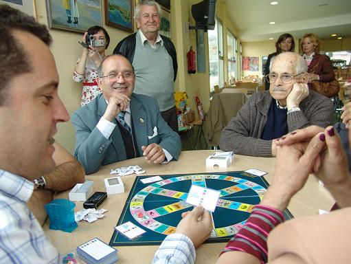 Ramón Rodríguez, con traxe, xoga ao Trivial do PDSP