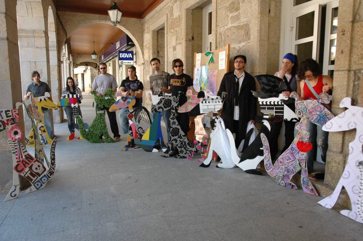 Na praza do Concello reuníronse por primeira vez os quince cans con boa parte dos seus autores, que partiron dunha silueta de madeira para a transformaren ao seu gusto con dispares resultados e materiais. Até o día 25 estarán en escaparates do centro de Porriño, e o 26 trasladaranse ás leiras de Cans.