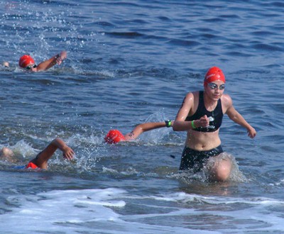 O acuatlón, deporte cuxa base é a auga, consiste en percorrer primeiro unha distancia curta a correr, despois unha longa nadando e para terminar outra curta correndo outra vez. É unha disciplina ligada ao duatlón e ao triatlón, pero sen a distancia en bicicleta, algo complicada de facer na praia.