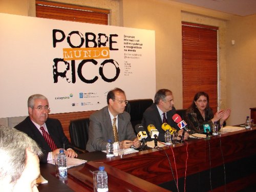 Unha serie de mesas debate e conferencias sobre a pobreza e a desigualdade no mundo percorrerán as sete cidades ao longo de dous meses: o 2 de outubro será inaugurado en Vigo, e o 29 de novembro, clausurado en Compostela. Presentárono en conferencia de prensa o secretario xeral de Comunicación da Xunta de Galicia, Fernando Salgado e o director xeral de Caixanova, José Luis Pego Alonso, logo de asinaren un convenio de colaboración, Guillermo Brea, director da Obra Social Caixanova e Carmen Carballo, directora do Club Internacional de Prensa.