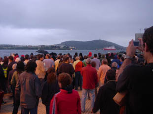 Por outra parte, centos de persoas apoiaron este xoves a acción protesta contra a entrada do terceiro buque gaseiro na ría, o "Cádiz Knutsen", cargado con 114 mil metros cúbicos de gas natural licuado. Os veciños renunciaron desta volta a saír nas lanchas e concentráronse nos peiraos de Curuxeiras, onde se bateron cazolos e tambores, camiñando desde os edificios da Autoridade Portuaria até o miradoiro do paseo marítimo.