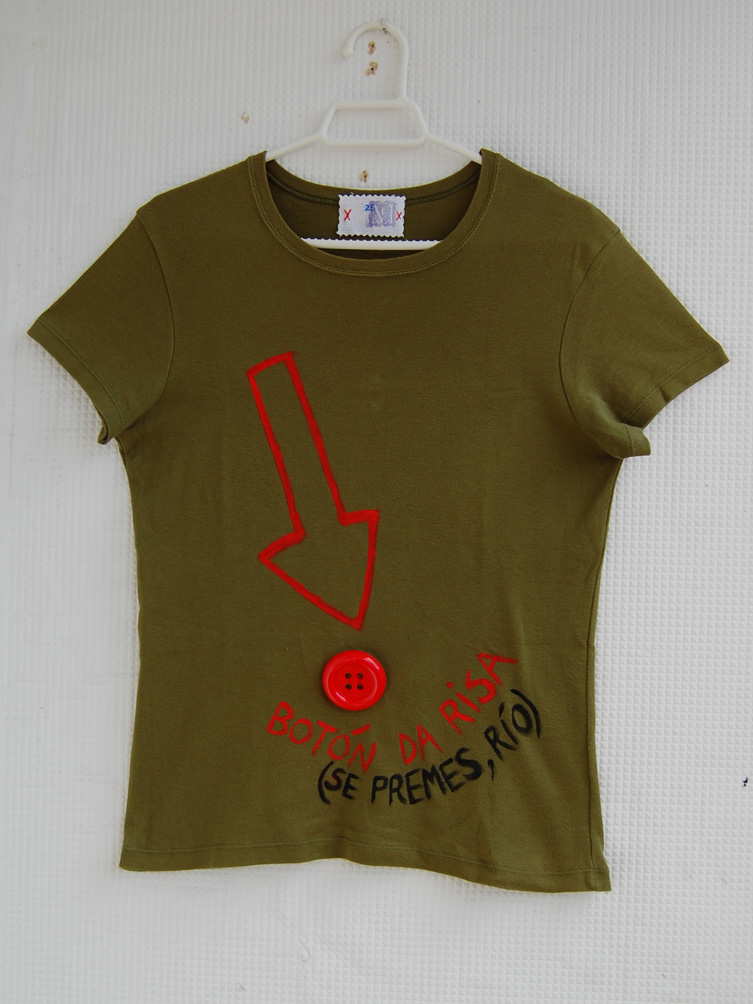Acrílicos, agulla, fíos, botóns, serigrafías, pero sobre todo, moita creatividade para expresaren sobre a tea o seu xeito de ver a vida. As gañadoras da segunda edición de 100% Algodón tíñano claro: a sinxela camiseta da luguesa Marta Salgado Iglesias, realizada con acrílico e costura e co título O botón da risa, convídanos a premer un botón máxico para facela rir, e valeulle o segundo premio, de 300 €.