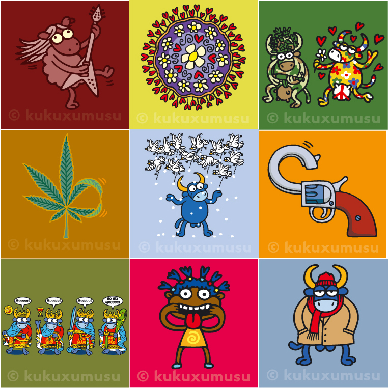 San Fermín. Así, facendo os seus propios debuxos, de bichiños a facer cousas de humanos -as vacas e as ovellas son as máis demandadas-, Kukuxumusu converteuse nunha próspera empresa.