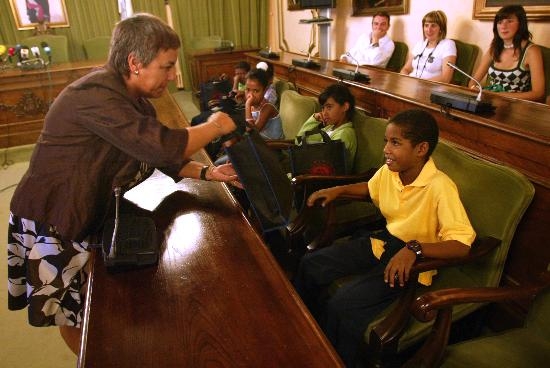 Tamén no Salón de Plenos do Concello da Coruña, o alcalde, Xavier Losada, recibiu aos doce nenos que forman parte do programa de acollida deste ano -en funcionamento dende 1993-, procedentes do campamento de refuxiados de Tinduf, en Alxeria.