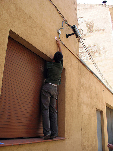 Marcando a situación dunha cámara de videovixiancia en Barcelona / Flickr: incongruente