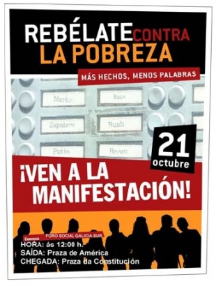 O colectivo, formado por máis de mil organizacións sociais de toda índole, convocou varias marchas. Cinco terán lugar a partir das 11.00 horas en Lugo (Praza Maior), A Coruña (Obelisco) e Compostela (Toural).