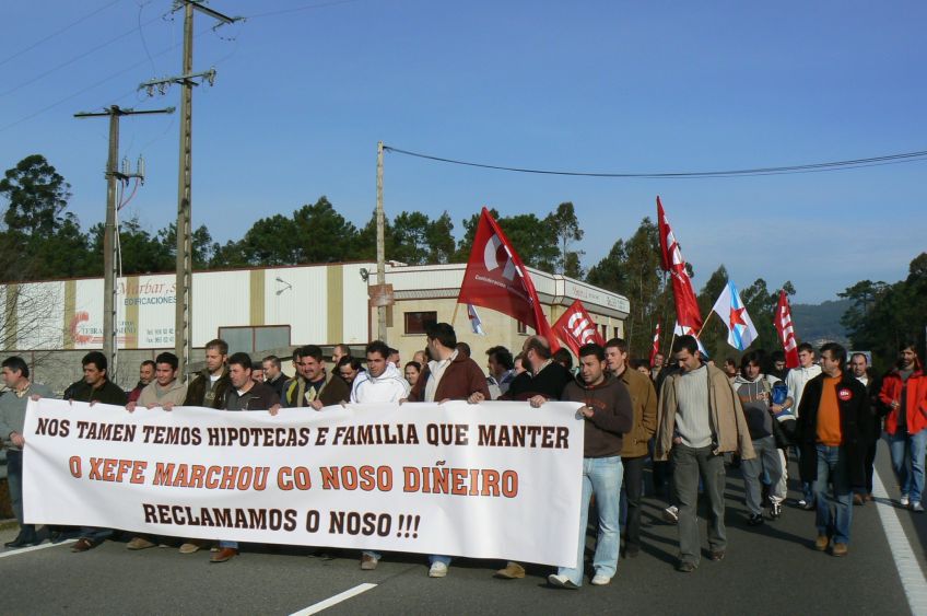 Despois volveron ao seu peche, que manteñen na nave da empresa dende a segunda feira, día no que o empresario Manuel Martínez Barros (dono de Marbar SL, e as súas filiais, Edificacións Marbar, Granitos Tebra, Granite 99 e Promocións Marbar 04), fuxía sen dar un aviso a ninguén.
