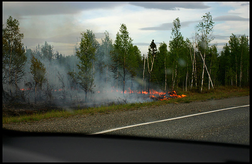 O lume, queimando a marxa dunha estrada, en Park Highway, Alaska / Flickr: Rickrz