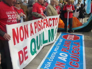 Veciños e colectivos sociais e medioambientais chegados de todo o país conforman unha marcha masiva caracterizada polo ambiente festivo e a música.