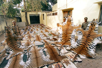 As poboacións de tigres están gravemente ameazadas polo caza ilegal e pola destrucións dos seus hábitats. O comercio, máis alá do Himalaia, de partes dos corpos destes animais, así como a pel, os ósos e as garras continúa e aumenta cada día. Nas fronteiras indias con Nepal Bangladesh e Birmania é fácil transportar este tipo de produtos de contrabando e vendelos por prezos ben elevados.