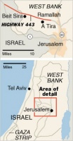 A estrada 443 pavimentouse sobre terras expropiadas aos residentes palestinos co obxectivo de cubrir as necesidades de desprazamento dos habitantes de Cisxordania, mais tras un período foise transformando nunha una vía só para israelís.