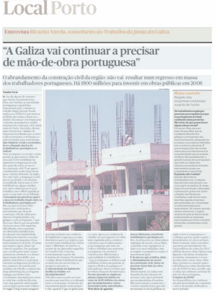 "Galiza vai continuar a precisar de man de obra portuguesa", analiza o conselleiro de Traballo, Ricardo Varela, en entrevista para o xornal luso Público.