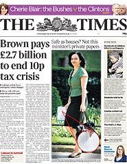 Esta cuarta feira, o xornal The Times levaba á primeira páxina un informe interno que a ministra de Vivenda, Caroline Flint, levaba na man de camiño a unha xuntanza no 10 de Downing Street.