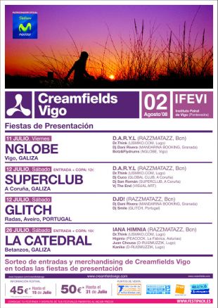 O 2 de agosto de 2008 o festival Creamfields chegará a Vigo por primeira vez. Coa actuación dos inevitábeis Chemical Brothers, Tiga, Richie Hawting, Derrick May... o de Vigo agarda converterse nun evento de referencia no noso país como o seu homónimo do sur.