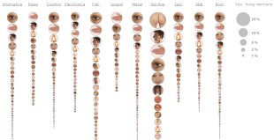 Fernande Viégas e Martin Wattenberg presentan na rede unha análise visual por xéneros das palabras máis empregadas nas cancións en relación coa anatomía humana.