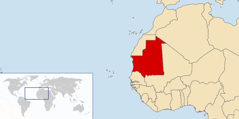 Localización de Mauritania, no norte de Africa
