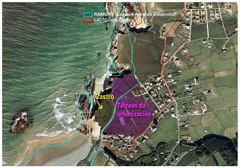 A parcela na que 'Construcciones Gallegas, S.A.' pretende construír a polémica urbanización inclúese na súa totalidade no LIC Costa Ártabra, parte da Rede Natura 2000. Diversos grupos medioambientais, encabezados por Adega, desenvolveron nos últimos meses diversas accións diante da administración local e galega para procurar a paralización do proxecto. O terreo linda con zonas Zepa (Zona de especial protección para as aves ) e Ramsar (convención internacional que protexe os humedais) e ademais sitúase a escasos metros do castro da Frouxeira.