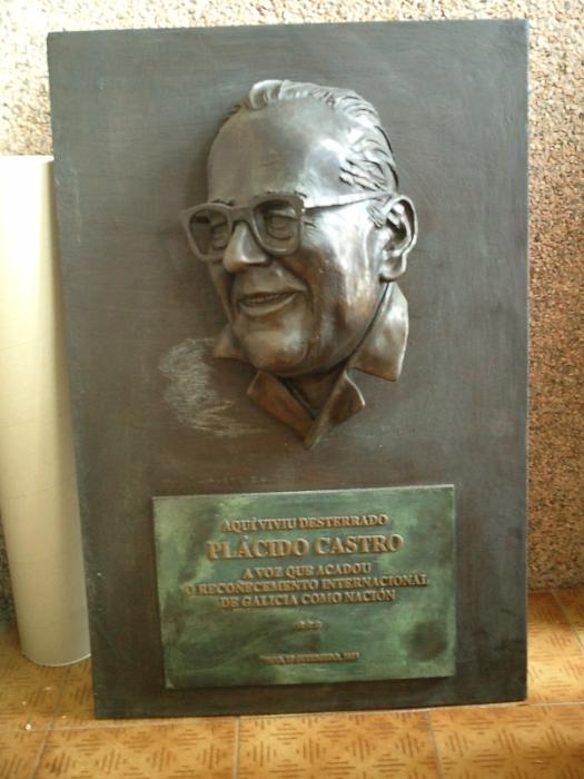 "Aquí viviu desterrado Plácido Castro, a voz que acadou o recoñecemento internacional de Galicia como nación", reza o lema.