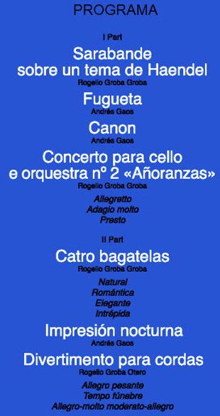 O concerto está organizado por Galeuzcamerata, Espai Polifònic Universitari, co apoio da Universidade de Barcelona, a Xunta de Galicia e o Centro Galego de Barcelona.