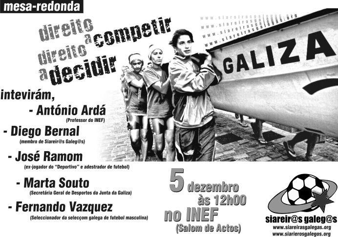 Comezan as actividades que o colectivo Siareir@s Galeg@s organiza cada ano arredor dos partidos que xogan no Nadal as seleccións nacionais de fútbol -a masculina e máis a feminina- cunha mesa redonda sobre o "Dereito a decidir, dereito a competir" dos nosos combinados.