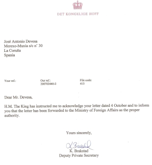 Na contestación chegada desde Noruega, a oficina do xefe de Estado noruegués anuncia o traslado das demandas veciñais ao Ministro de Asuntos Exteriores de Noruega. Un feito simbólico, pero que os veciños de Merexo aproveitan para exemplificar o que consideran que é a actual situación das súas reivindicacións. Así, destacan que fronte á "sensibilidade con esta inxustiza" mostrada fóra de Galiza, no noso país "Xunta e Concello seguen mirando cara a outro lado".