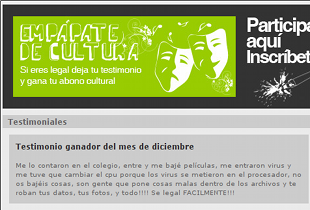 A campaña Se es legal, es legal, posta en marcha polo Ministerio de Cultura para concienciar a poboación contra o intercambio de arquivos con dereitos de autor, conseguiu ser burlada polos internautas. De feito, o testemuño que gañou o premio do mes de decembro é falso.