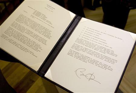 Obama ratificou o documento rodeado por militares e membros do seu Executivo no Despacho Oval da Casa Branca, logo dunha reunión para discutir sobre a política de detención dos sospeitosos de terrorismo.
