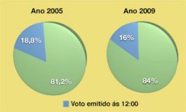 Por volta do mediodía, o 15,81% do electorado galego xa tiña acudido ás urnas, unha cifra máis pequena que a rexistrada en 2005 cando, a esta hora xa tiña votado o 18,8% das persoas con dereito a facelo.