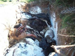 A maiores constatouse -tamén fotograficamente- a existencia no propio recinto dunha foxa de profundidade indeterminada con varios cans mortos e cubertos por cal. A lexislación europea estabelece que debe ser un xestor especializado o que se encargue, ben do soterramento dos cadáveres, ben da súa incineración.