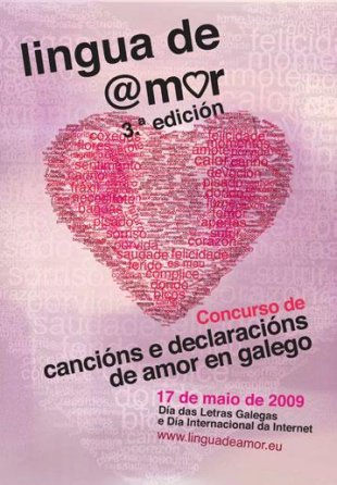 Lingua de Amor chega á súa terceira edición, e mantén o obxectivo de incitar aos mozos e mozas a empregar o galego para o amor, para as declaracións románticas, para os espazos máis íntimos. Trátase en definitiva de conquistar novos espazos de uso para o galego, sobre todo entre os máis novos e aproveitando as novas tecnoloxías promover a lingua dun xeito lúdico. Máis ou menos o mesmo obxectivo que procura Ferve na Rede. Lingua de Amor está organizado por Consello da Xuventude de Galicia, o servizo de Normalización Lingüística do Concello de Vigo, a Secretaría Xeral de Política Lingüística e a libraría Couceiro. Os textos e cancións pódense enviar até o 10 de maio a través da propia páxina do concurso.