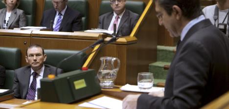 O lehendakari en funcións, que falou após Patxi López, volveu defender a Lei de Consulta e o chamado Plan Ibarretxe, alén da súa candidatura que, dixo, "está avalada polo resultado democrático do 1 de marzo", explicando que a presenta "por respecto á maioría democrática que nos apoiou, e para que se visualicen con claridade dous modelos de país". "non vou ser eu quen poña en dúbida a lexitimidade do señor López para chegar á presidencia cos votos do PP, pero a lexitimidade social das urnas avala a miña candidatura", recalcou. Nesta liña, Ibarretxe acusou a PSE e PP de "enganar os electores", ao lles ocultar "a existencia dunha alianza pechada en Madrid" para chegar ao poder en Euskadi, e denunciou o emprego "perverso" da Lei de Partidos para acadar este obxectivo.