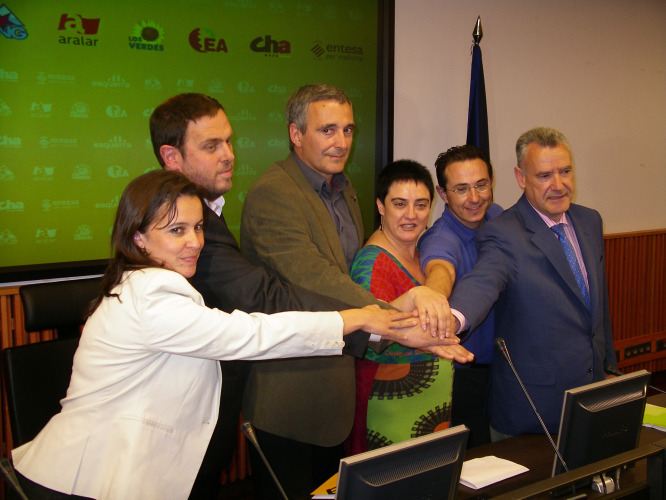 A coalición Europa dos Pobos-Verdes, integrada por ERC, BNG, Aralar, Os Verdes, Eusko Alkartasuna, a Chunta Aragonesista e Entesa per Mallorca, presentou esta cuarta feira no Congreso dos Deputados, en Madrid, nunha conferencia de prensa plurilingüe, o seu manifesto para as eleccións europeas do vindeiro 7 de xuño.