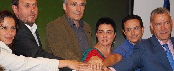 "As eleccións europeas son unha boa oportunidade para presentar en Europa un proxecto común que defenda tanto os intereses de Galiza, Euskal Herria, Aragón, os Países Catalans e de todos os pobos do Estado Español. E todo iso dende a perspectiva da súa lingua, a súa cultura e a súa identidade, como dos valores democráticos, as políticas sociais e dunha visión de futuro ecolóxica e sustentábel", resume o manifesto. No acto participaron os seis primeiros candidatos da lista: Oriol Junqueras (ERC), Ana Miranda (BNG), Iñaki Irazabalbeitia (Aralar), Pura Peris (Confederación Estatal d'Os Verdes), Sabin Intxaurraga (EA) e Miguel Martínez (CHA).