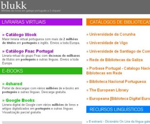 Blukk é un portal que permite acceder a varios millóns de libros e e-books en portugués publicados en calquera lugar do planeta, de xeito sinxelo e de balde. Concíbese para dar servizo aos usuarios galegos, e incorpora recursos de lingua, diccionarios, e o acceso ás webs das tres universidades do país, as bibliotecas de Galiza, as de Portugal e outros portais, como Europeana.