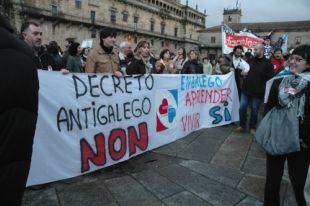 Convocados pola plataforma Queremos Galego, concentráronse diante do Pazo de Raxoi onde se agardaba que este mércores se celebrase o Consello da Xunta, tal e como o executivo liderado por Alberto Núñez Feijoo vén facendo desde o inicio desta lexislatura. O cambio desta reunión ás instalacións da Xunta en San Caetano foi xustamente un dos reproches realizados polo presidente da Mesa pola Normalización Lingüística, Carlos Callón, durante a súa breve intervención no Obradoiro. Callón censurou a "política galegófoba" do actual Goberno e denunciou o ataque "contra a nosa lingua no ensino".