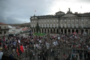 O frío e a choiva non escorrentaron ánimos este mércores en Santiago de Compostela, onde contra ás 17 horas da tarde unha multitude ateigou a Praza do Obradoiro en defensa da lingua do país.