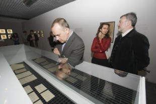 Antón Bao presentou a mostra acompañado da directora do Museo, Aurelia Balseiro, e dun dos comisarios da mostra, Felipe Senén López