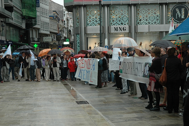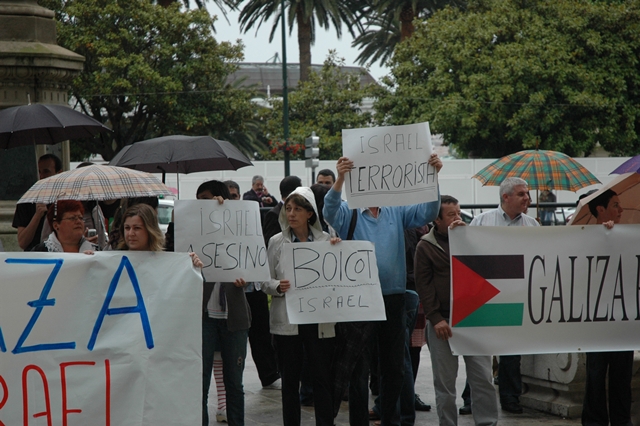 Centos de persoas concentráronse este martes á tardiña en varias localidades do país para mostrar a súa repulsa ao asalto do Exército israelí á Frota da Liberdade e á política do goberno de Israel cara aos palestinos.