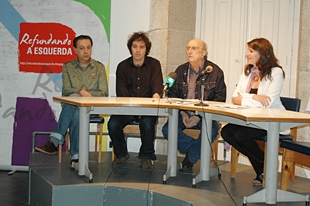 Como unha convidada máis, canda o profesor da USC especializado en pedagoxía Herminio Barreiro, o poeta e xornalista Xoán Abeleira e o escultor ferrolán Suso Basterrechea, presentaron o acto público que este sábado ás 11.30 horas, no Teatro Principal de Compostela, escenificará o inicio dun proceso que procura pór os alicerces dunha "alternativa real ao sistema capitalista".