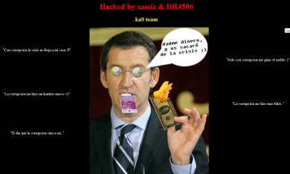 Fontes deste departamento sinalaron que a imaxe apareceu "uns tres minutos" até que "lograron neutralizala", e posteriormente a Xunta decidiu abrir unha investigación para determinar a orixe. Na imaxe aparecía Feijoo cun billete de 500 euros na boca e outro de dólar ardendo na súa man, coa mención de "dádeme diñeiro e sacareivos da crise" escrito en castelán.