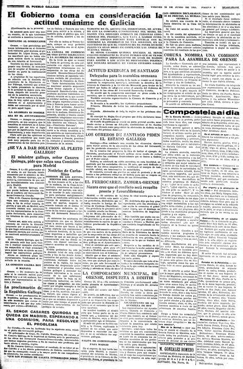 'El Pueblo Gallego', 28 de xuño de 1931 (clique para ampliar)