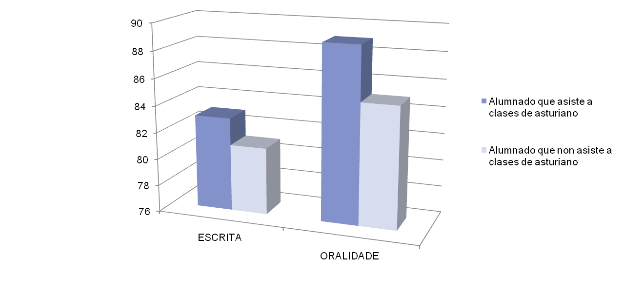 Neste estudo chegouse á conclusión de que o alumnado que asistía a clase de asturiano e castelán tiña un mellor coñecemento do castelán có que só tiña clase de castelán. Teñen máis horas de lingua e reforzan os aspectos comúns das mesmas. Ademais, con isto o alumnado desenvolve a lingua propia e logo transfire os coñecementos á outra coa que ten contacto.