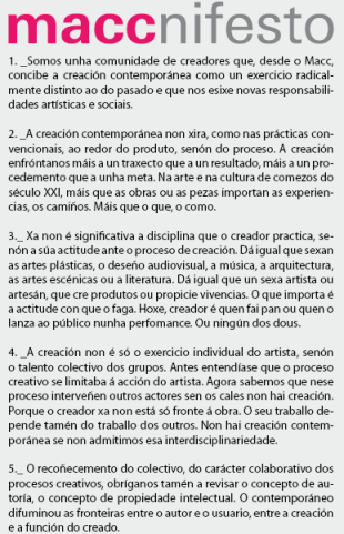 "Nun momento no que a cultura se concentra na busca de grandes nomes cos que entreter grandes grupos de xente, o Macc aposta por traer a Compostela a maior concentración de talento nunca vista co obxectivo de comezar a construir un novo modelo". Deste xeito o explicaba esta quinta feira Vítor Belho, presidente de Atlantic Connection, entidade promotora deste Mercado Atlántico de Creación Contemporánea (Macc).