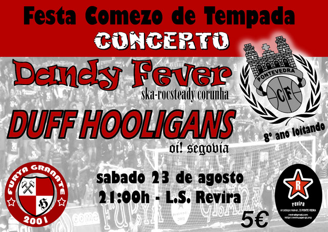 SÁBADO 23 DE AGOSTO NO LOCAL SOCIAL A REVIRA CONCERTO DE DUFF HOOLIGANS + DANDY FEVER. PREÇO: 5€