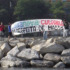 Unha vintena de cangueses contrarios á construción do porto deportivo en Salgueirón protestaron contra a entrada de varios vehículos cargados de pedra e terra.