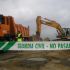 Unha vintena de cangueses contrarios á construción do porto deportivo en Salgueirón protestaron contra a entrada de varios vehículos cargados de pedra e terra.