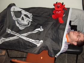 No gume das trinta ou corenta horas, quen máis e quen menos, xa lle bota unha topeñada en calquera recanto. A cada guerreiro, no cadaleito e no catre, que lle poñan a bandeira que se gañe ou mereza. En terra de disco duro, a caveira con parche no oco do ollo seica é manto axeitado.